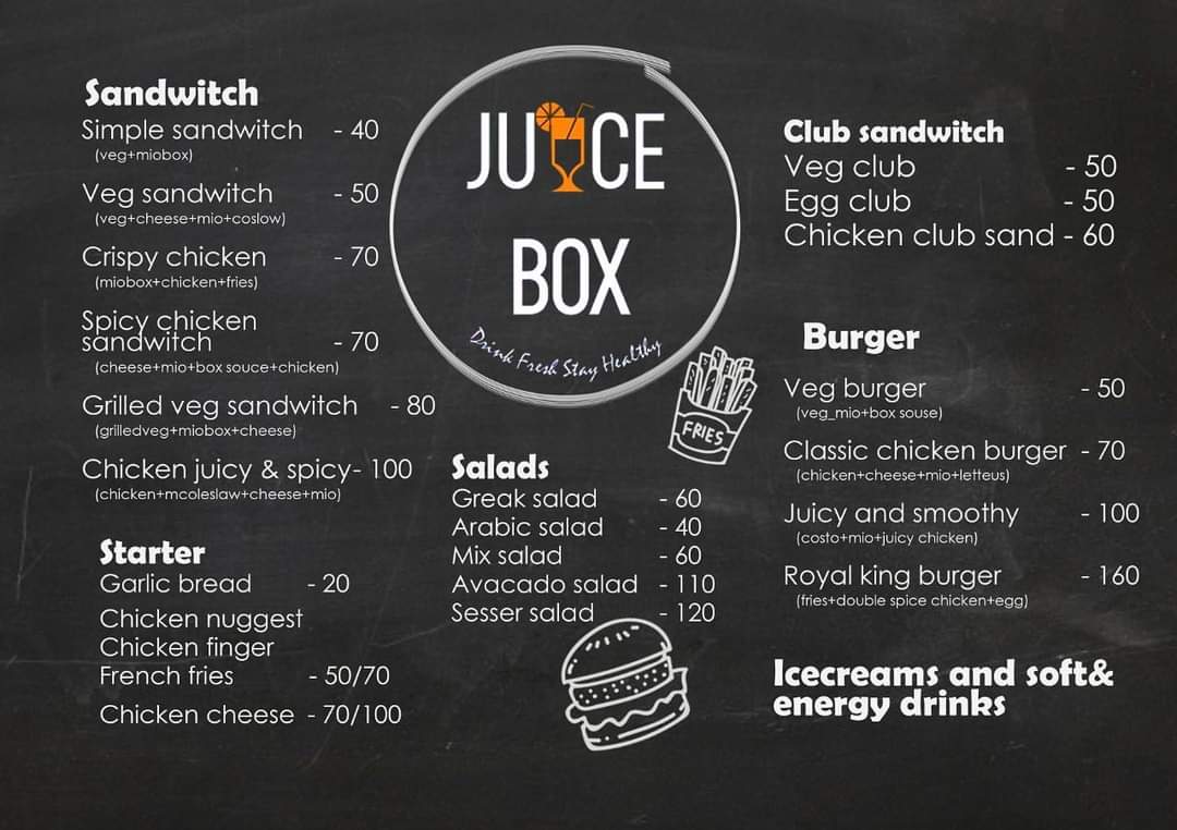 The culinary offering at Cafe Juice Box is both refreshing and satisfying, showcasing a unique menu that includes healthy food, snack cafefresh juices, and mouthwatering burgers. Each dish is thoughtfully prepared, ensuring that whether you're in the mood for a rejuvenating juice or a hearty snack, you leave feeling delighted.
